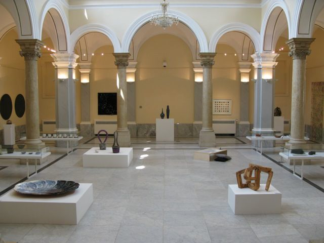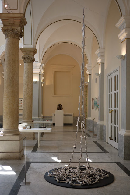View of the exhibition space at Mimara Museum. Right foreground; “After the storm”, wooden sculpture by Erlend Leirdal